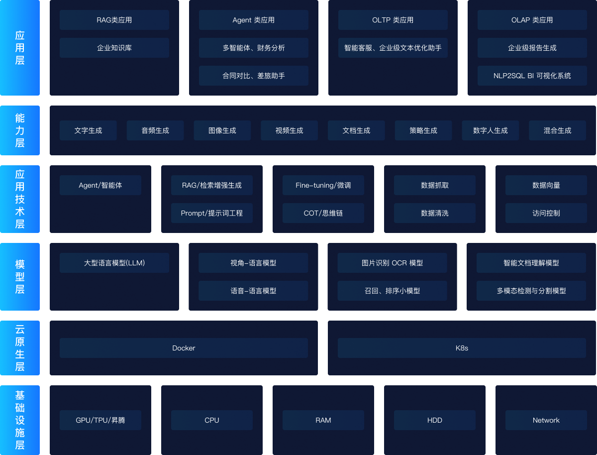 在企業(yè)級AI創(chuàng)新應(yīng)用定制中,我們?nèi)诤隙喾N前沿模型,如語言、圖文、音頻、視頻模型等,為企業(yè)提供強大的自然語言處理、內(nèi)容生成、智能交互等定制化服務(wù)。