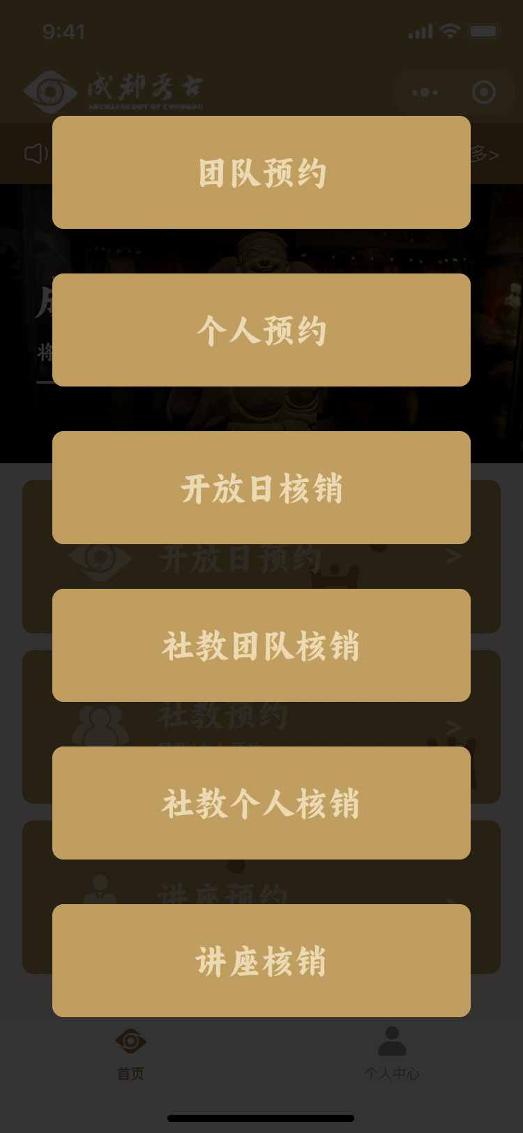 這款考古小程序的核心功能之一是提供多種預(yù)約服務(wù)。用戶可以根據(jù)自身需求,選擇開放日預(yù)約、社教預(yù)約、講座預(yù)約、團隊預(yù)約或個人預(yù)約等。這樣的設(shè)計確保了不同用戶群體都能輕松預(yù)約到適合自己的考古活動,無論是個人愛好者還是團隊組織,都能得到專業(yè)化的服務(wù)。