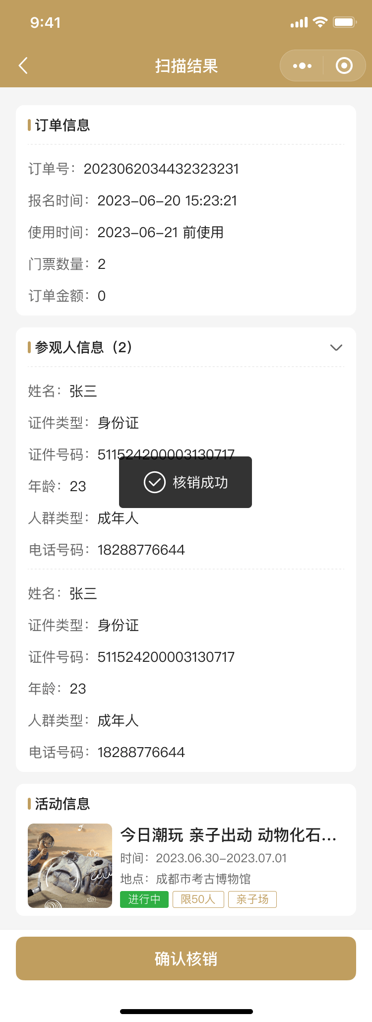 為了提高考古活動的組織和管理效率,小程序特別設(shè)計了開放日核銷、社教團隊核銷、社教個人核銷和講座核銷等功能。這些功能幫助工作人員快速確認參與者的預(yù)約信息,確?;顒拥捻樌M行。同時,核銷功能也為用戶提供了一種便捷的簽到方式,提升了整體的活動體驗。