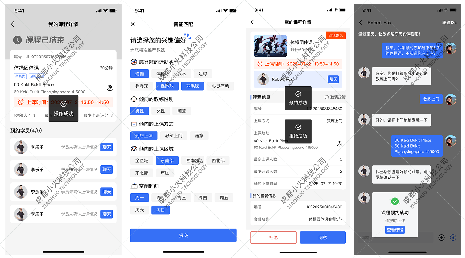 大家好,我們是成都小火科技公司,今天是2025年8月28日,星期四。針對傳統(tǒng)健身預(yù)約模式中存在的教練匹配不精準、課程選擇盲目、預(yù)約流程繁瑣等問題,我們公司開發(fā)了一款“雙語言的健身教練預(yù)約APP”,通過區(qū)分學員端與教練端的功能設(shè)計,結(jié)合AI技術(shù)與實用化服務(wù)模塊,為用戶提供從健身需求分析到教練預(yù)約、課程管理的全流程解決方案。