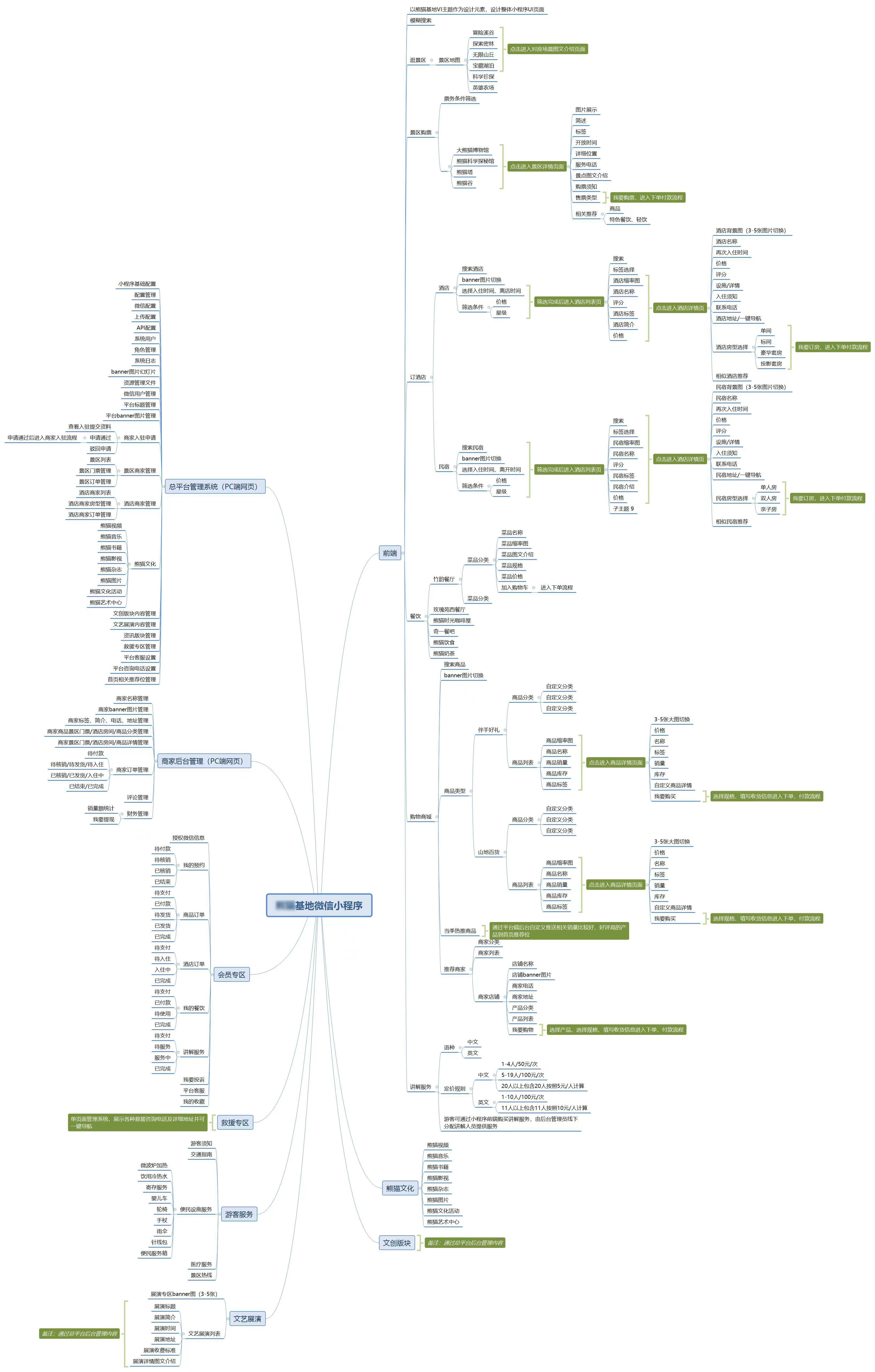 因為景區(qū)有商家入駐,所以后臺的管理端分為了總后臺管理端和商家后臺端。我們在做需求圖的時候,就像財務(wù)里面的會計分錄一樣,需要明白這個功能從哪里來,到哪里去。商家管理功能從入駐商家而來,到總管理后臺去了。然后我們再來分析細節(jié)流程:商家入駐申請,總管理后臺審核,審核通過之后商家發(fā)布信息,信息同步到總后臺,總后臺輸出到用戶端。整個流程就這樣走通了。