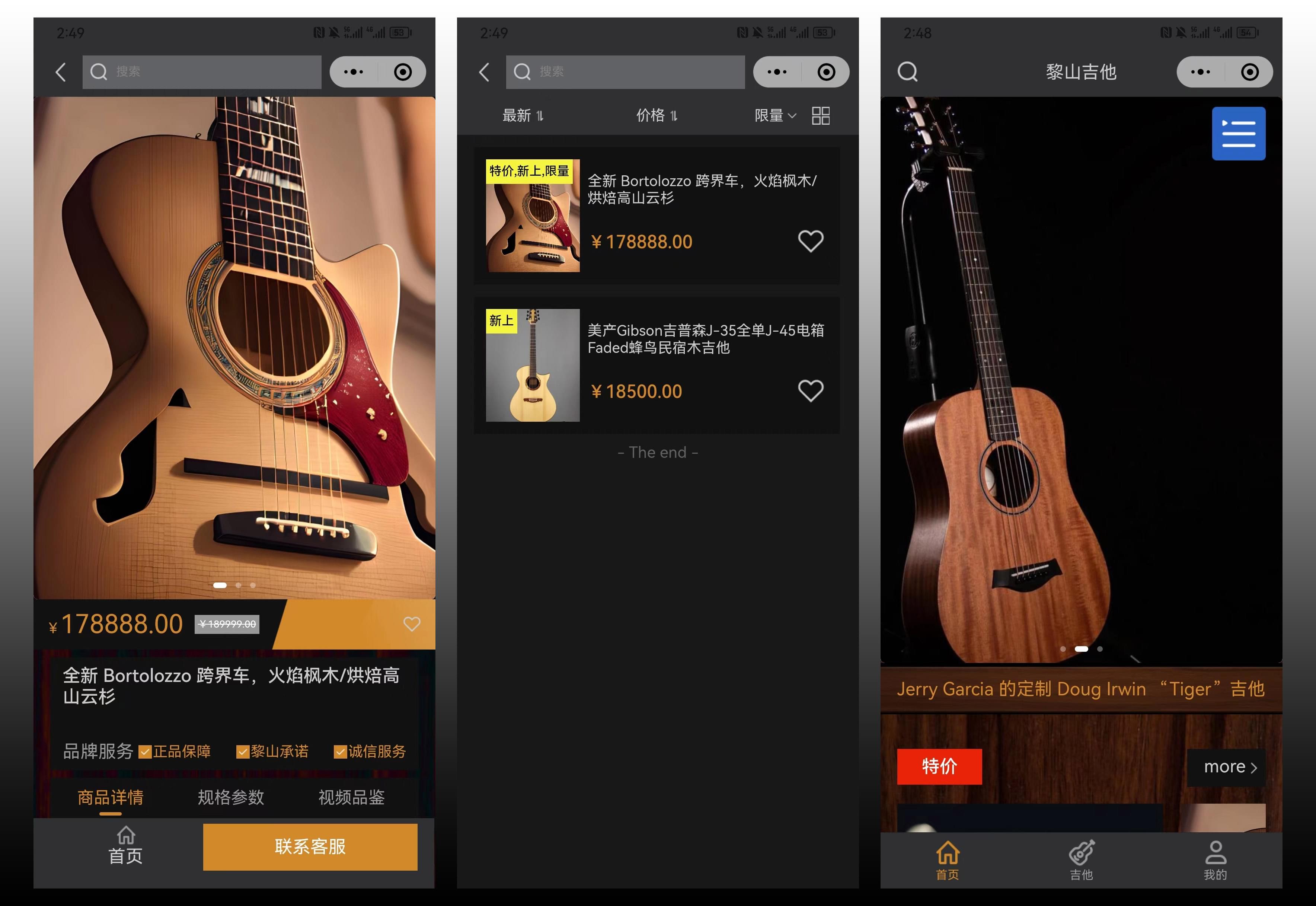 與普通吉他不同的是,該吉他平臺商城的定位是中高端吉他,售價一般都幾萬到幾十萬不等??蛻魪木W(wǎng)絡(luò)上瀏覽到我們的案例之后,喜歡我們的設(shè)計,就找到了我們。