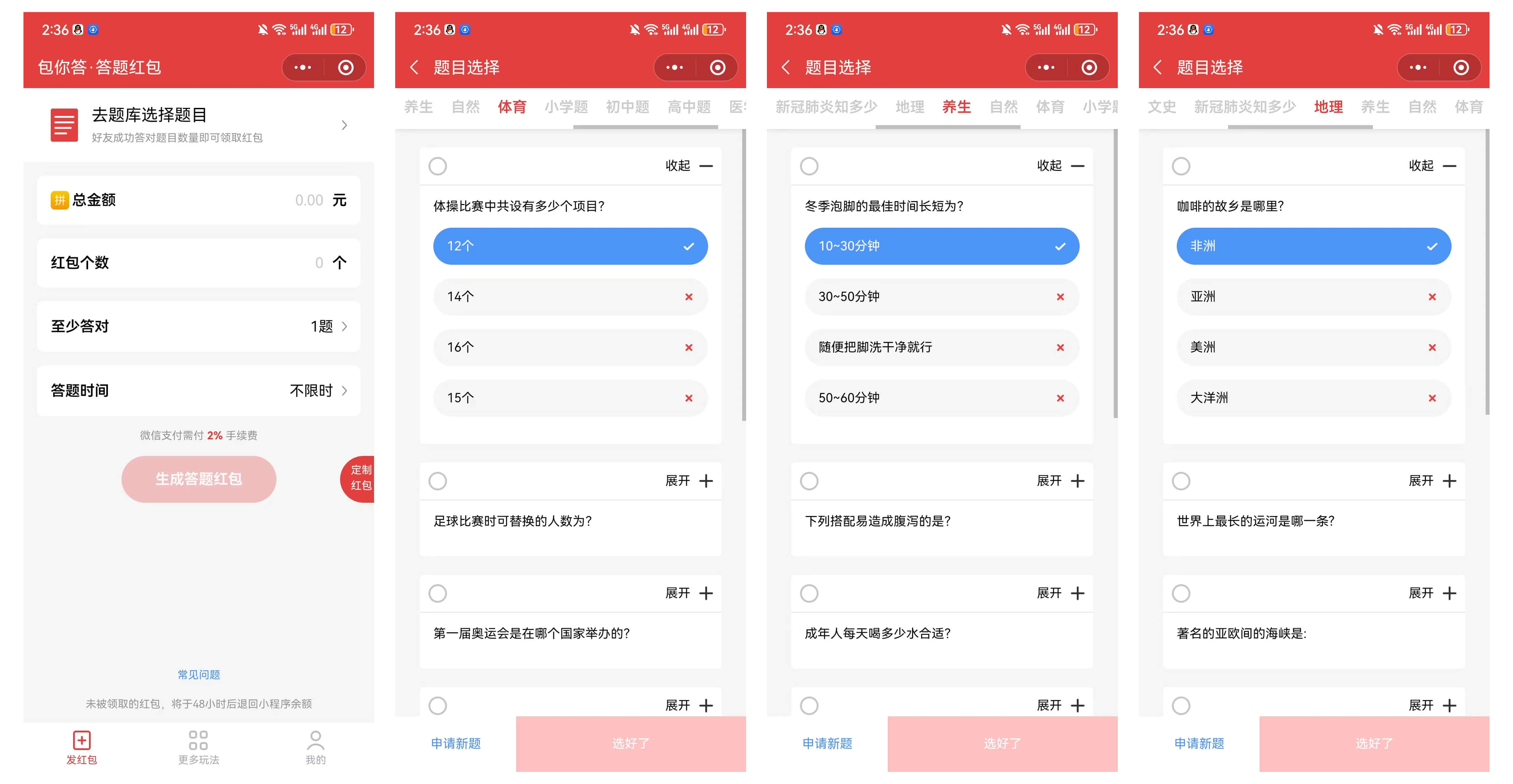 這款微信答題紅包小程序的核心功能在于,用戶可以自定義題目和答案,好友答對一定數(shù)量的題目之后,可以獲得相應(yīng)的紅包。這樣一來,不僅讓用戶在答題的過程中獲得知識,還增加了互動的趣味性,讓人們在輕松愉快的氛圍中,增進(jìn)彼此的了解和感情。同時(shí),我們可以通過答題,把自己積累的知識教授給自己的孩子,讓孩子也參與趣味答題。人生就是一個(gè)積累的過程,我們不能始終在原地踏步,我們應(yīng)該渴望更多的知識,渴望與好友真誠交流的快樂,渴望給孩子帶來知識的滿足感。