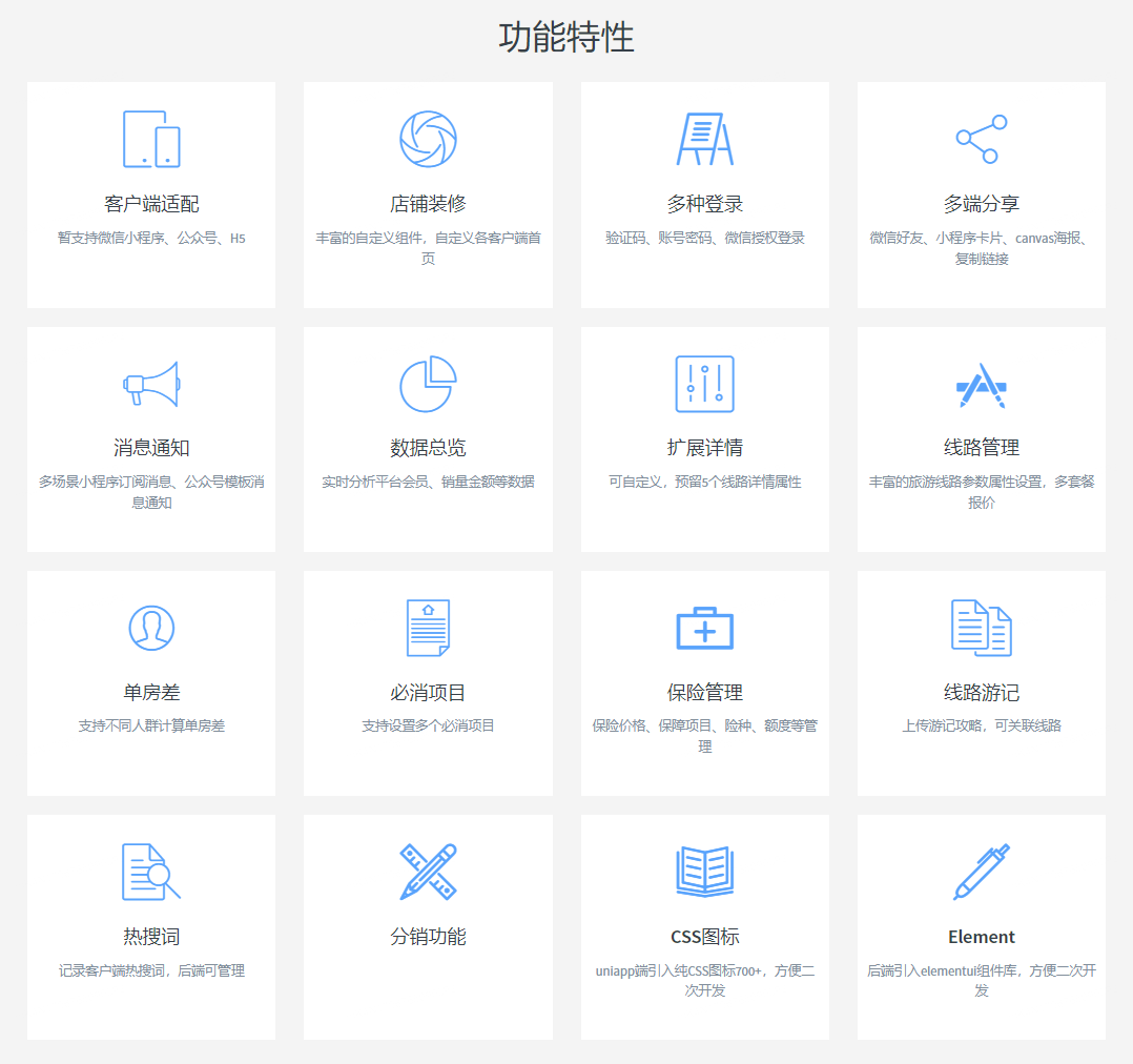首先,這套旅游管理系統(tǒng)擁有豐富的裝修組件,您可以根據自己的需求自定義各客戶端首項,提供個性化的用戶體驗。此外,系統(tǒng)暫支持微信小程序、公眾號和H5,覆蓋了廣泛的用戶群體,讓您的業(yè)務觸角伸展到各個角落。