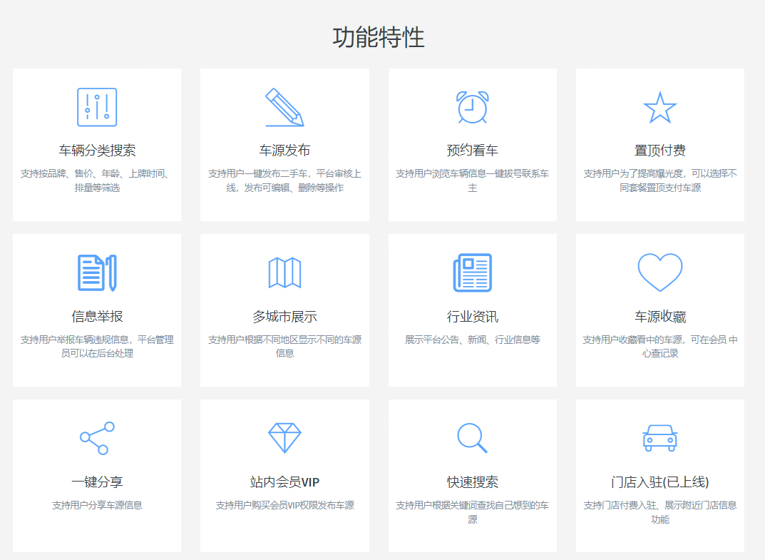 8. 行業(yè)資訊:展示平臺公告、新聞、行業(yè)信息等,讓用戶了解二手車市場動態(tài)。
