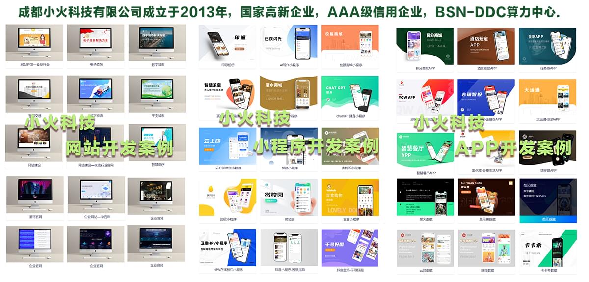 6.成都線下軟件開發(fā)公司:成都小火科技有限公司成立與2013年,10年線下實體軟件開發(fā)公司。國家高新企業(yè),AAA級信用企業(yè),BSN-DDC算力中心,文昌鏈精英服務(wù)商。
